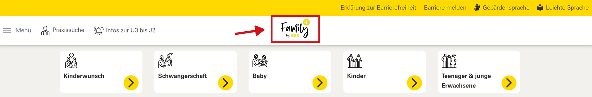 Das Logo von BKK Family Plus ist immer oben in der Mitte.